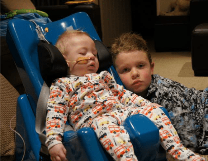 During Mitchell’s first two years, he missed developmental milestones like sitting, crawling and talking and he was fed via nasal gastric tube and then a Mic-key button through his tummy. We managed his seizures with a 5-times a day medication regime, while he also suffered aspirations, which meant admissions for an increasing spate of chest infections becoming Pneumonia