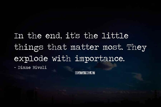 In the end, it’s the little things that matter most. They explode with importance. Diane Rivoli